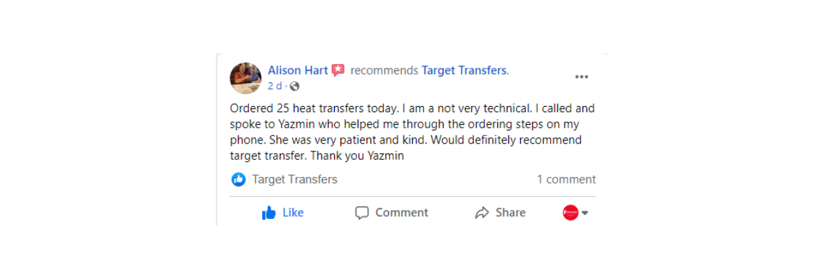 "I encourage anyone else to check out Target Transfers videos, I've been able to go from nothing to a good understanding of printing." - Kuda